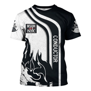 Railspirit Personalized Western Pacific Railroad T-Shirt Flame Design with Custom Job Position Train Shirt