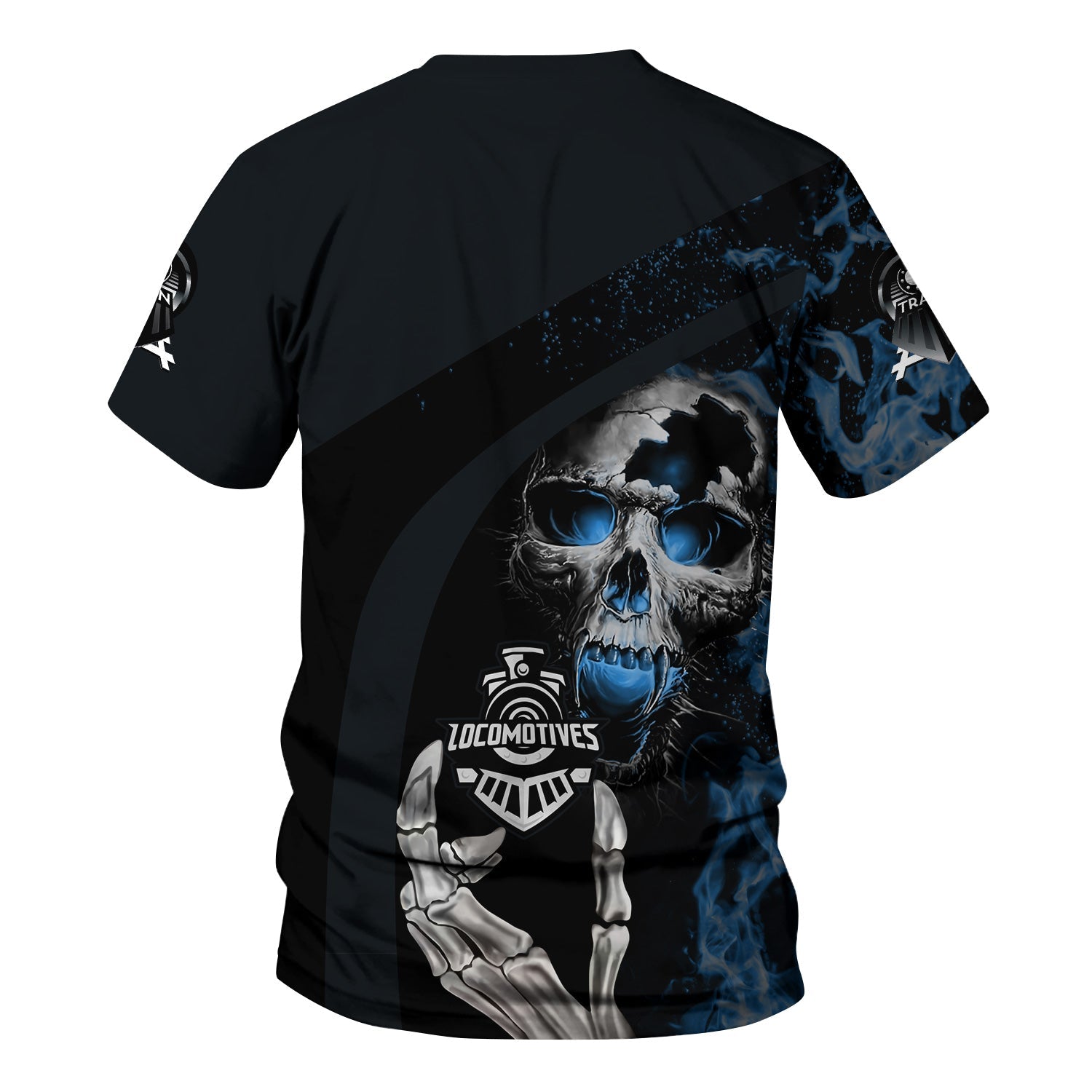 Railspirit Personalized Western Pacific Railroad T-Shirt Flame Skull Design Train Shirt for Locomotive Fans