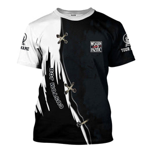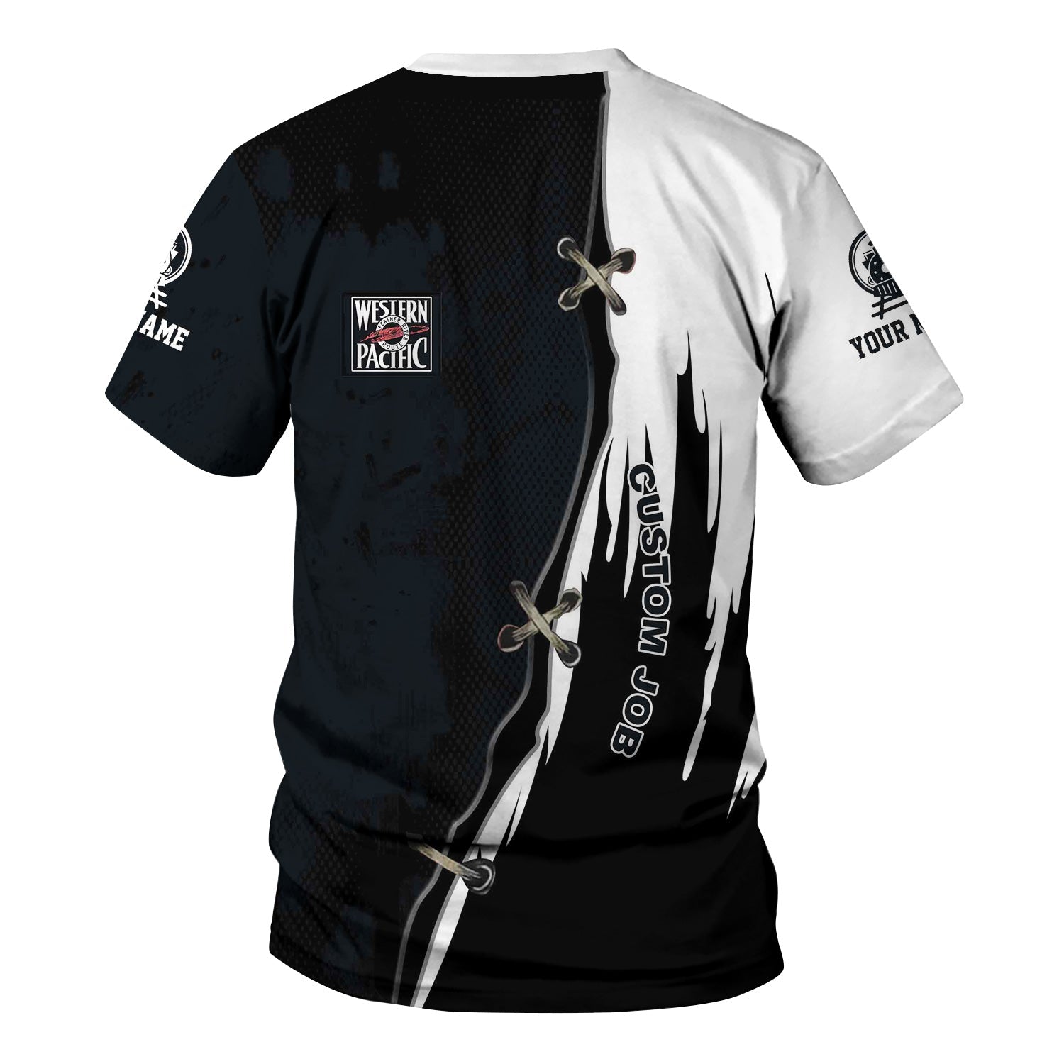 Railspirit Personalized Western Pacific Railroad T-Shirt Retro Stitches Design with Custom Position Train Shirt
