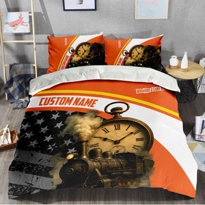 Railspirit Personalized Wheeling And Lake Erie Railroad Bedding Set Classic Steam Engine With Retro Pocket Watch Bedding Set All Over Print