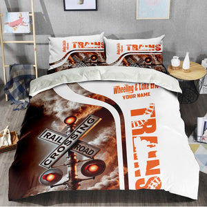 Railspirit Personalized Wheeling And Lake Erie Railroad Bedding Set Railroad Crossing Sign Bedding Set All Over Print