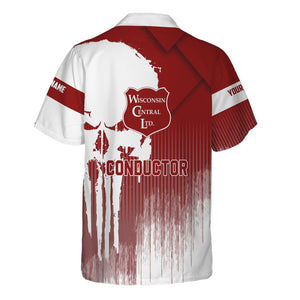 Railspirit Personalized Wisconsin Central Ltd Railroad Hawaiian Shirt Skull Design with Custom Job Train Shirt for Trackhead Crew