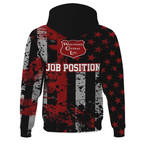 Railspirit Personalized Wisconsin Central Ltd Railroad Hoodie Artistic Paint American Flag Style Train Zip Up Hoodie