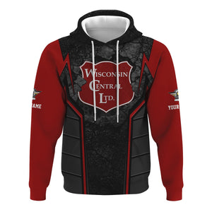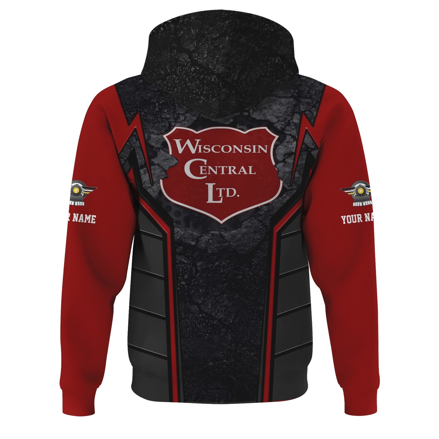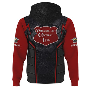 Railspirit Personalized Wisconsin Central Ltd Railroad Hoodie Cracked Metal Design Train Zip Up Hoodie for Rail Enthusiasts
