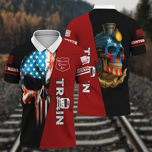 Railspirit Personalized Wisconsin Central Ltd Railroad Polo Shirt Train Skull American Flag Shirt All Over Print