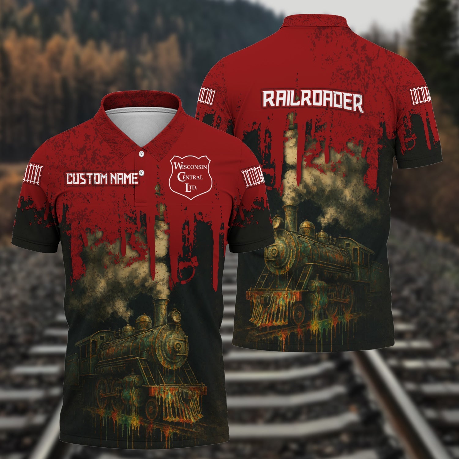 Railspirit Personalized Wisconsin Central Ltd Railroad Polo Shirt Vintage Train Art Style Shirt For Locomotive Fans