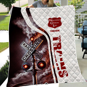 Railspirit Personalized Wisconsin Central Ltd Railroad Premium Quilts Railroad Crossing Sign Quilts All Over Print