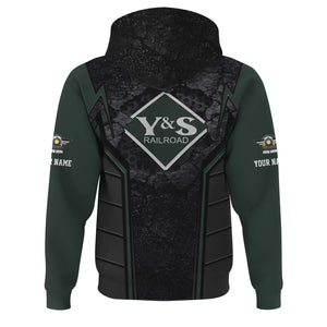 Railspirit Personalized Youngstown & Southern Railroad Hoodie Cracked Metal Design Train Zip Up Hoodie for Rail Enthusiasts