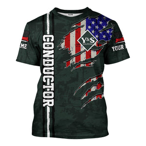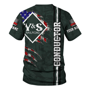Railspirit Personalized Youngstown & Southern Railroad T-Shirt USA Flag Claw Art with Custom Job Train Shirt