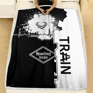 Railspirit Reading Railroad Blanket Engine Heartbeat and Track Love Style Blanket Gift Idea For Train Lovers