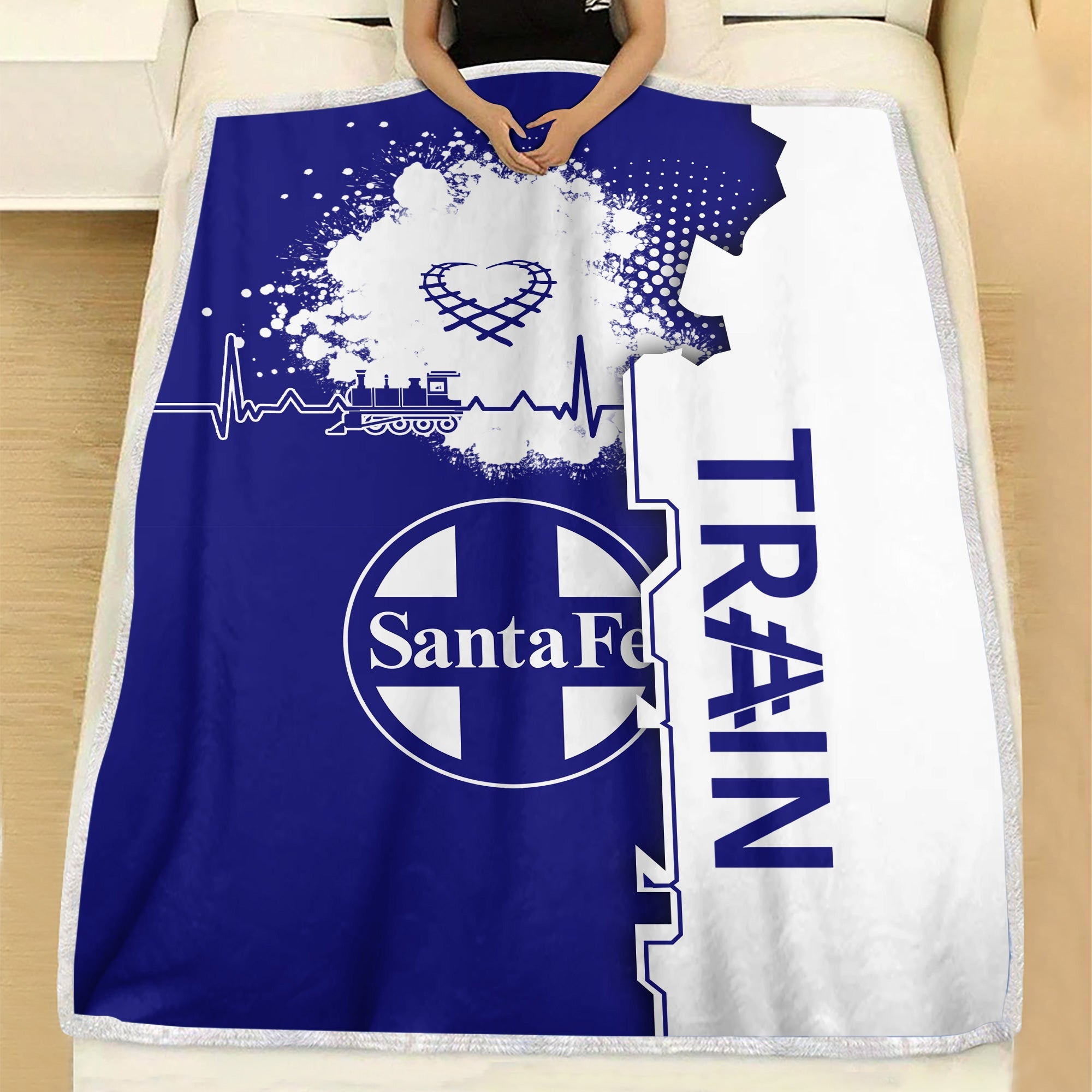 Railspirit Santa Fe Railway Blanket Engine Heartbeat and Track Love Style Atchison, Topeka and Santa Fe Railway Blanket Gift Idea For Train Lovers