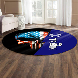 Railspirit Santa Fe Railway Round Mat Train Skull American Flag Style Atchison, Topeka and Santa Fe Railway Mat All Over Print