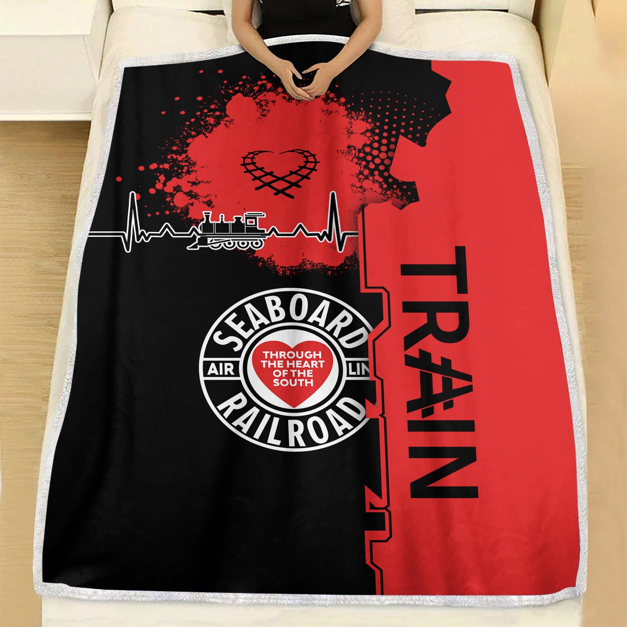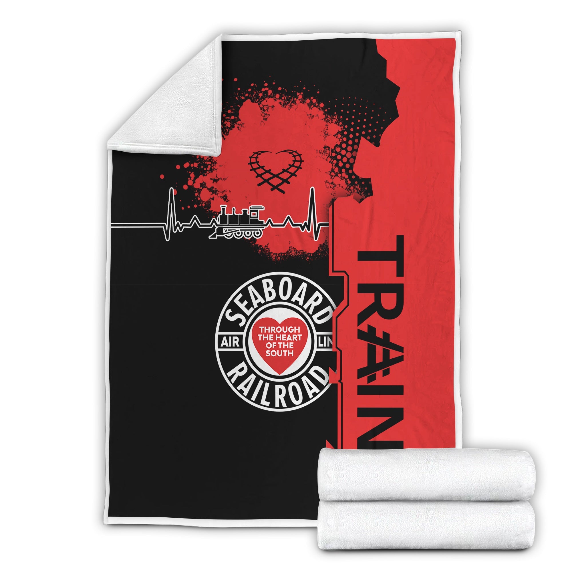 Railspirit Seaboard Air Line Railroad Blanket Engine Heartbeat and Track Love Style Blanket Gift Idea For Train Lovers