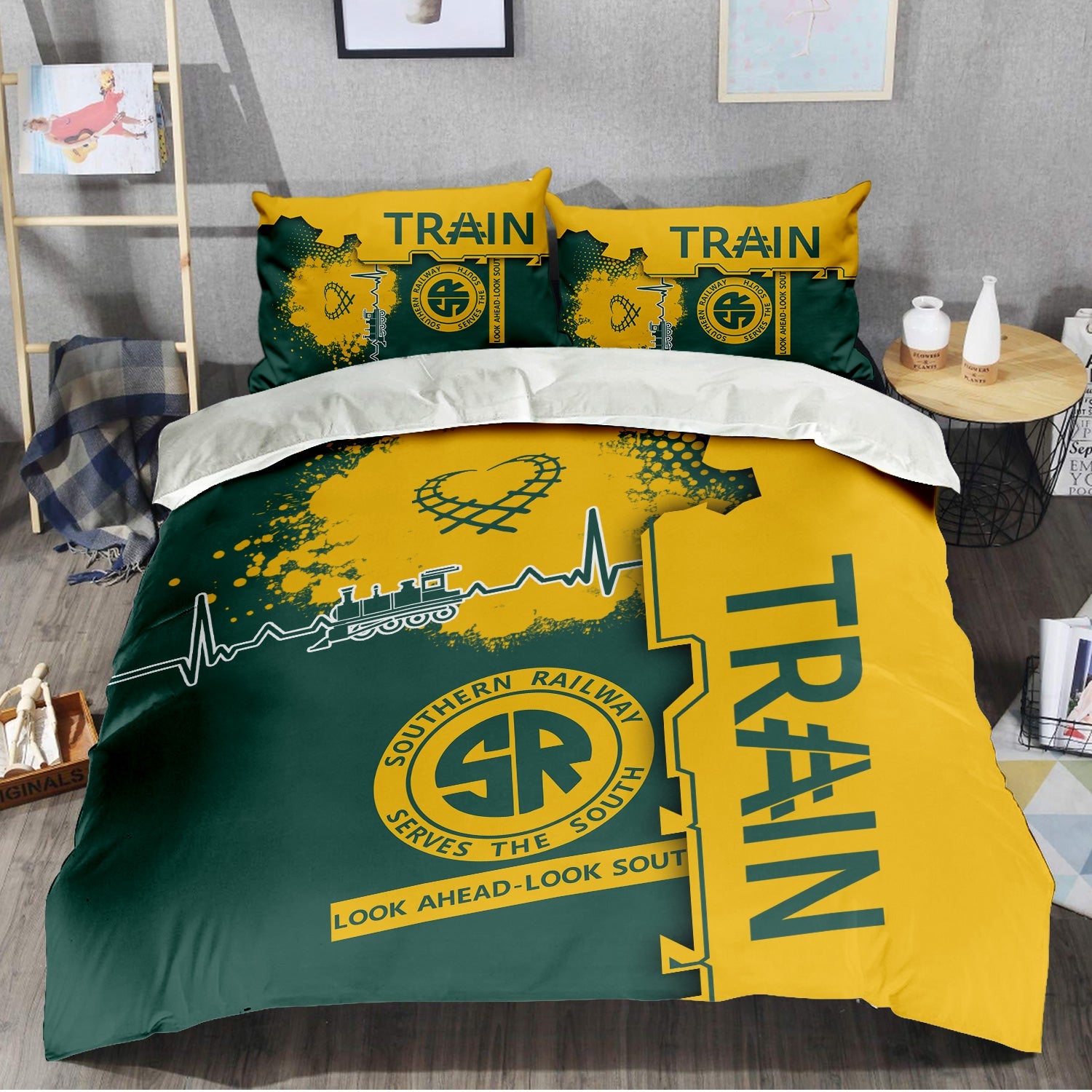 Railspirit Southern Railway U.S Bedding Set Engine Heartbeat and Track Love Style SOU Bedding Set Gift Idea For Train Lovers