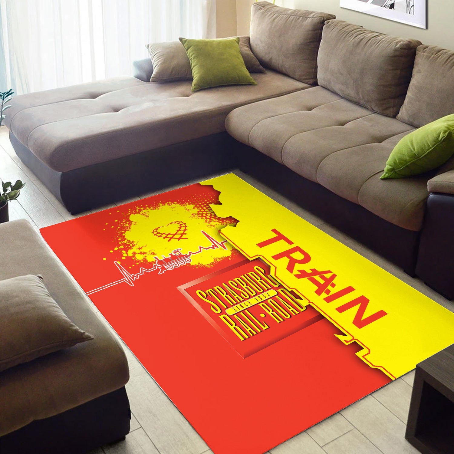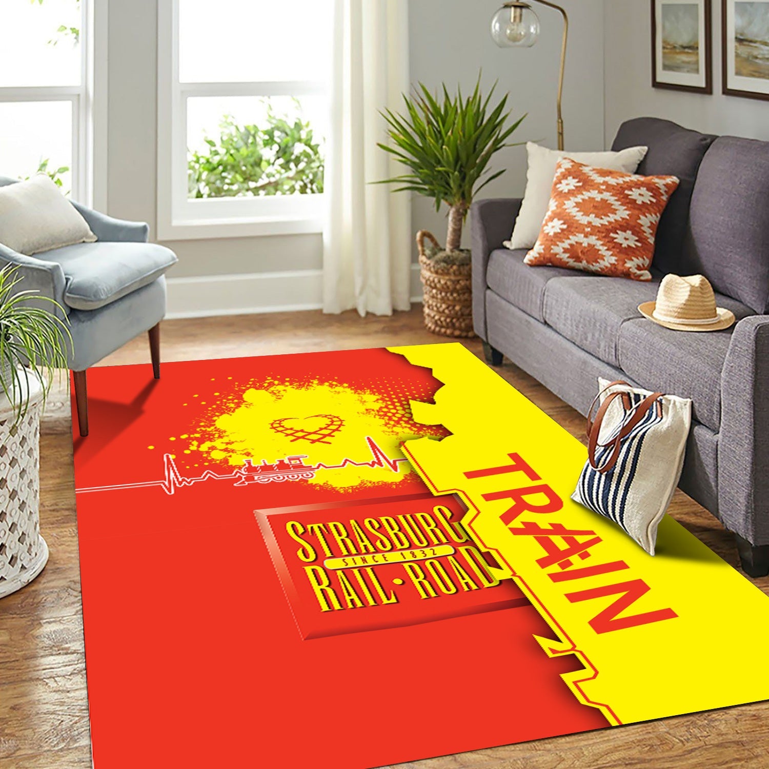 Railspirit Strasburg Railroad Area Rug Engine Heartbeat and Track Love Style Rug Gift Idea For Train Lovers