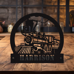 Railspirit Train Silhouette Metal Standing Sign Home Decor Gift Idea For Train Fan