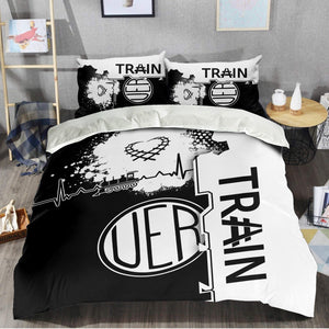 Railspirit Union Electric Railway Bedding Set Engine Heartbeat and Track Love Style Bedding Set Gift Idea For Train Lovers