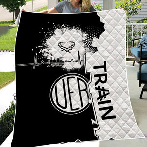Railspirit Union Electric Railway Premium Quilts Engine Heartbeat and Track Love Style Quilts Gift Idea For Train Lovers