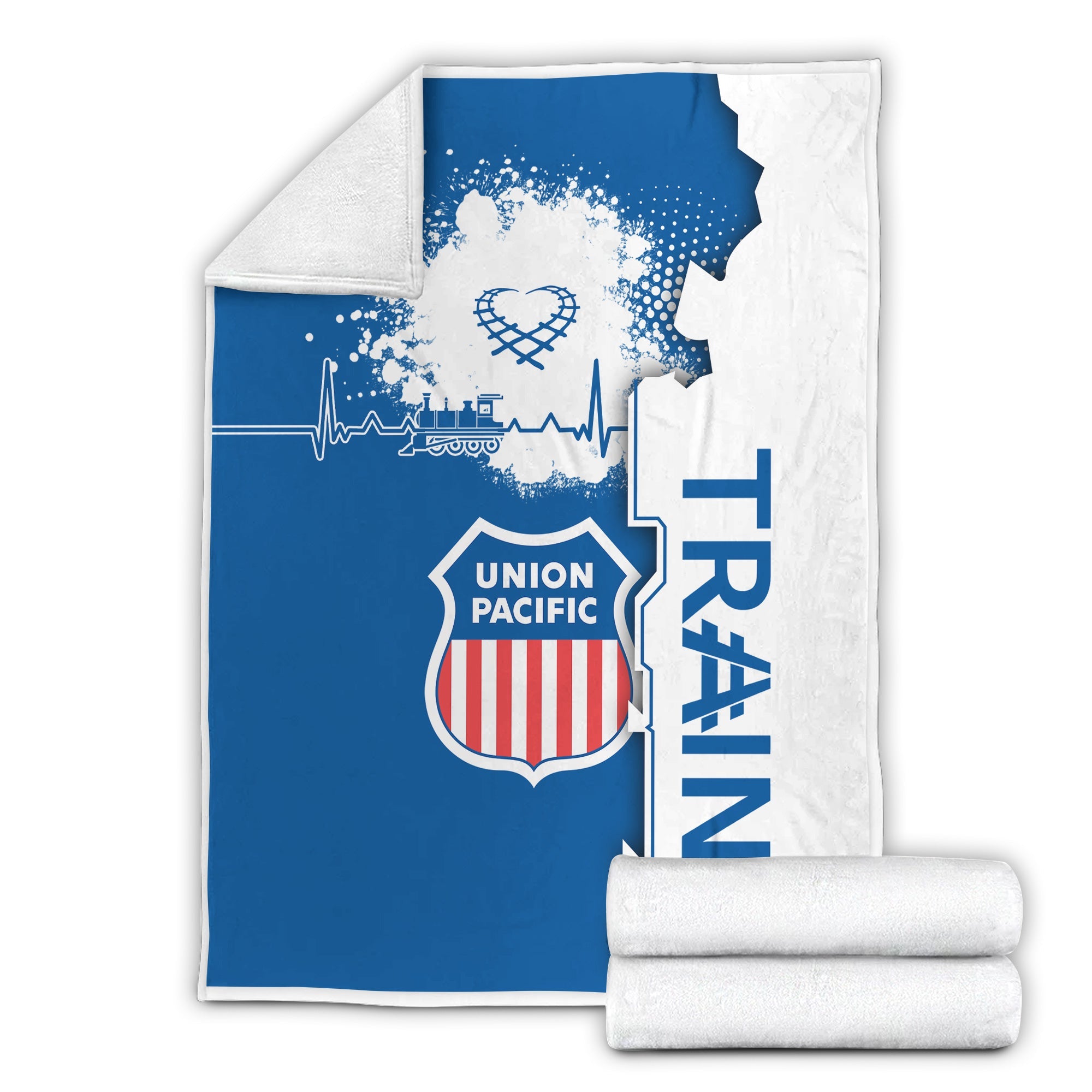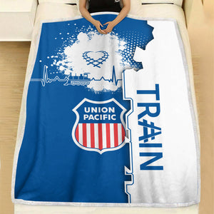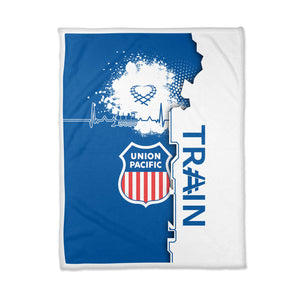 Railspirit Union Pacific Railroad Blanket Engine Heartbeat and Track Love Style Big Boy Blanket Gift Idea For Train Lovers