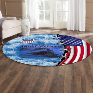 Railspirit Union Pacific Railroad Round Mat Retro American Express Train With USA Flag Big Boy Round Mat