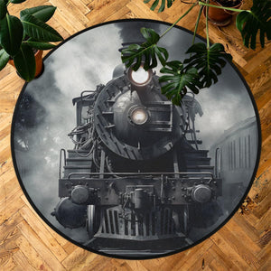 Railspirit Vintage Locomotive Train Black Printed Round Mat
