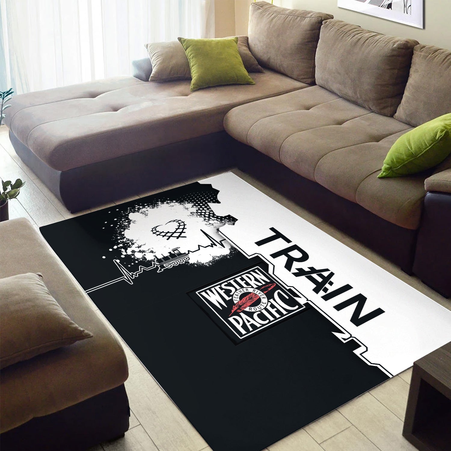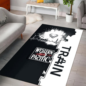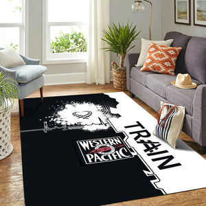 Railspirit Western Pacific Railroad Area Rug Engine Heartbeat and Track Love Style Rug Gift Idea For Train Lovers