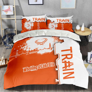Railspirit Wheeling And Lake Erie Railroad Bedding Set Engine Heartbeat and Track Love Style Bedding Set Gift Idea For Train Lovers