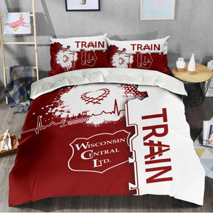 Railspirit Wisconsin Central Ltd Railroad Bedding Set Engine Heartbeat and Track Love Style Bedding Set Gift Idea For Train Lovers