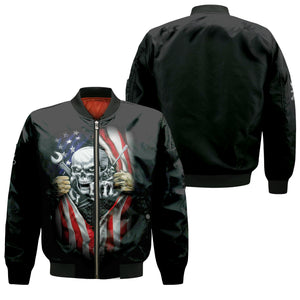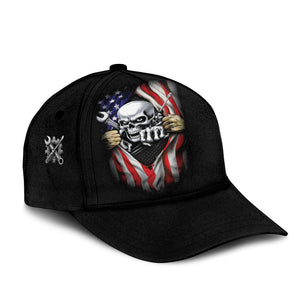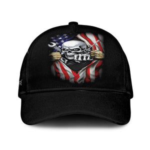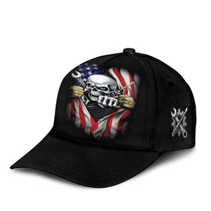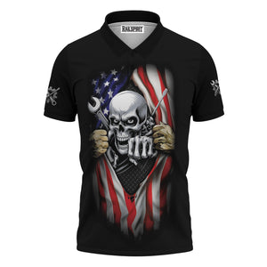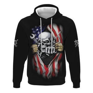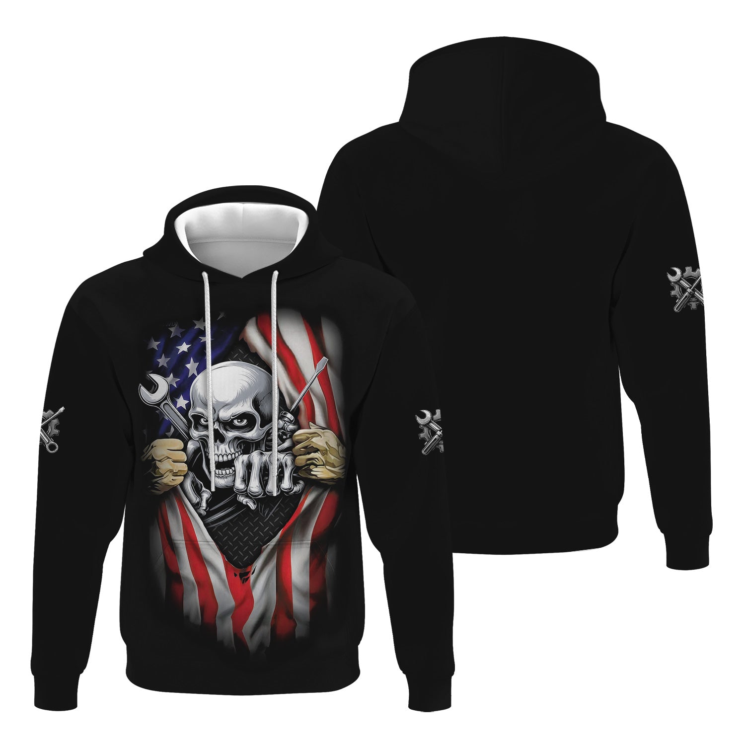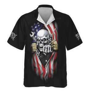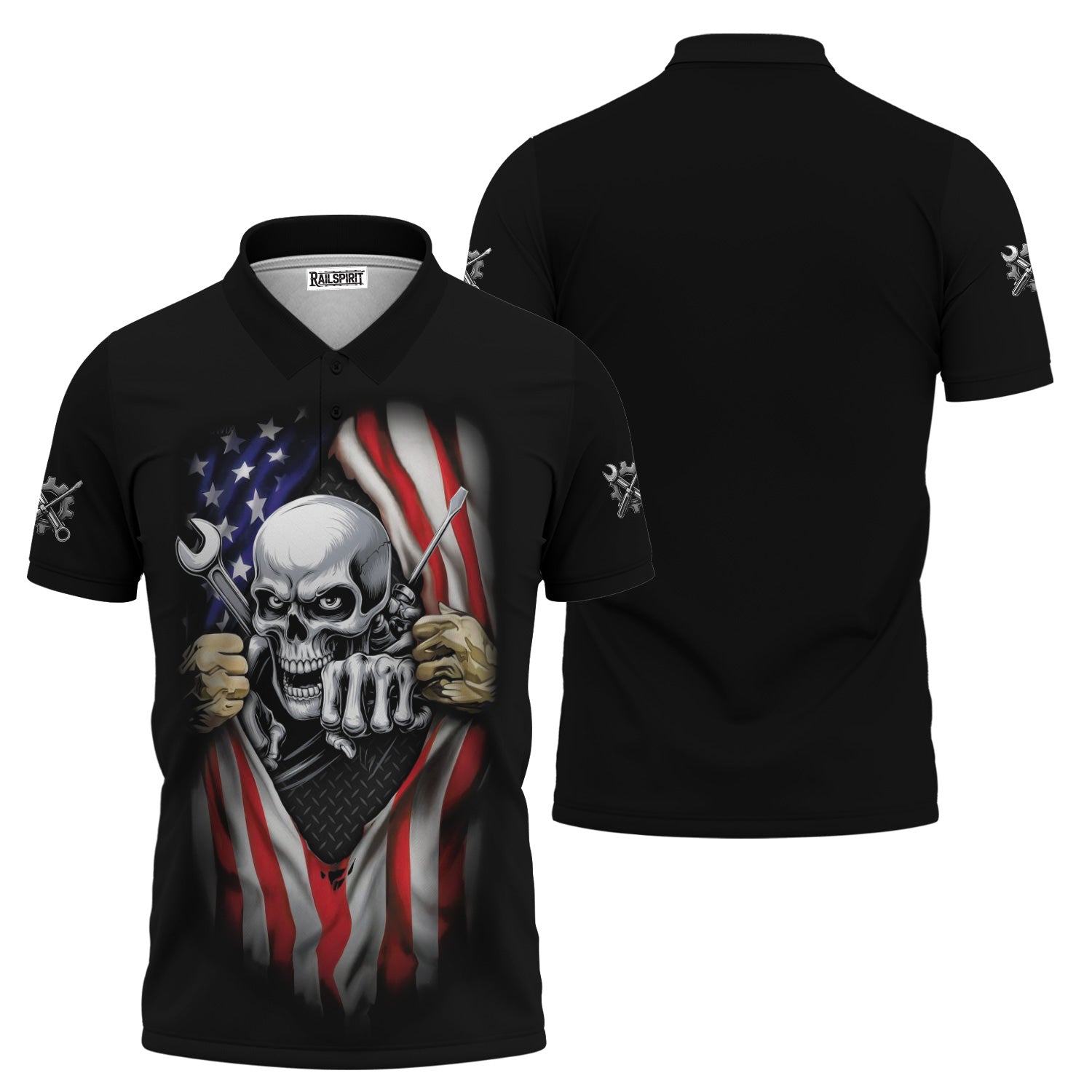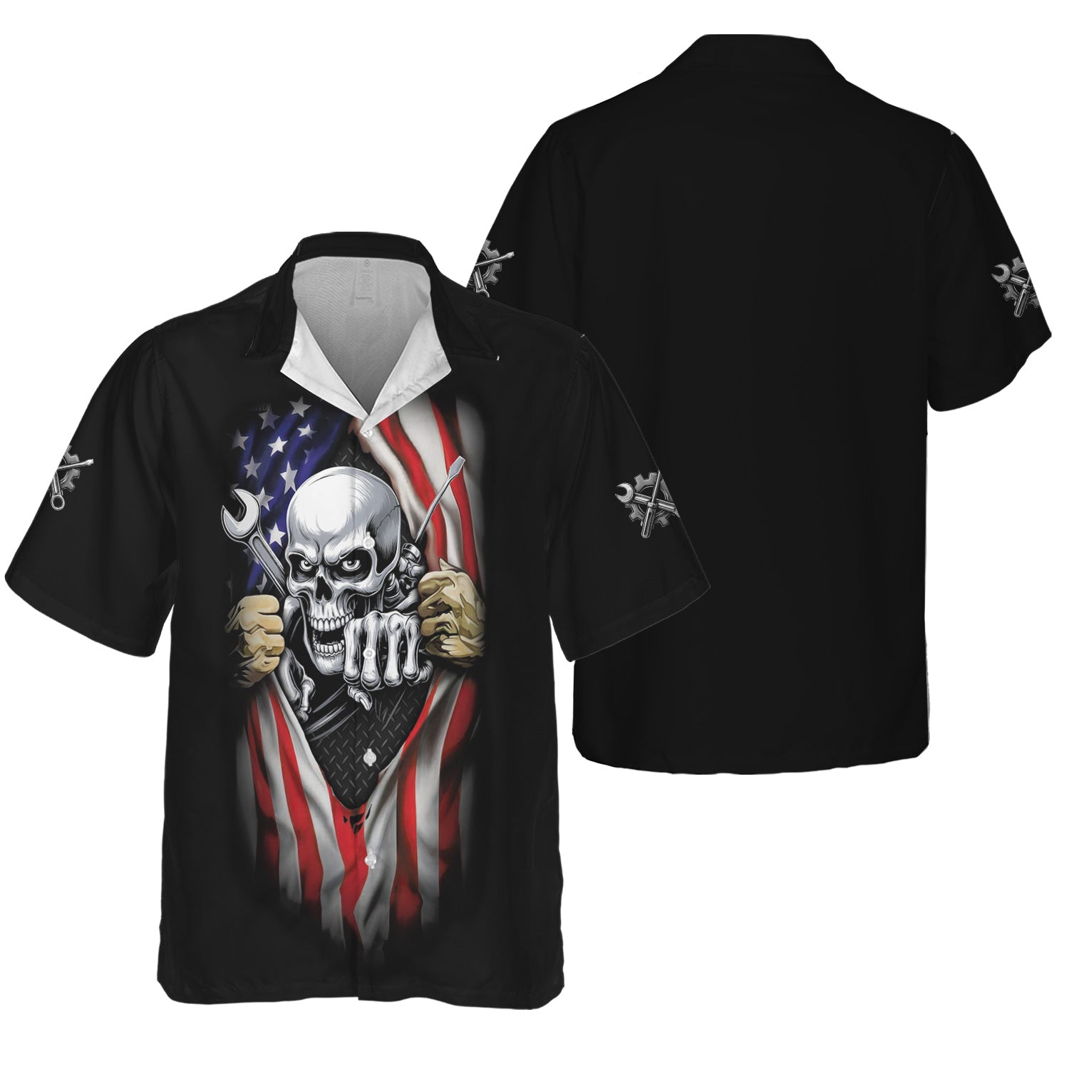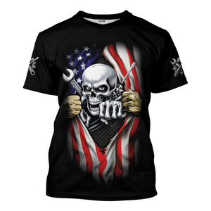 Skull Wrench T-Shirt, American Flag Design, Mechanic, Worker Gift, Unique Skull Graphic Tee for Men, Customizable Apparel, Cool Work Shirt