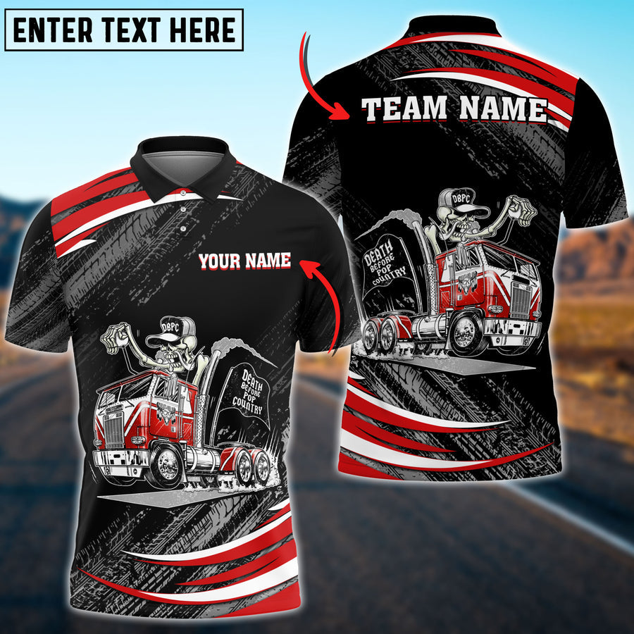 Personalized Name Truck Breath of Fire Skull Shirt, Gift For Truck Driver, Trucking Gift 3D Polo Shirt