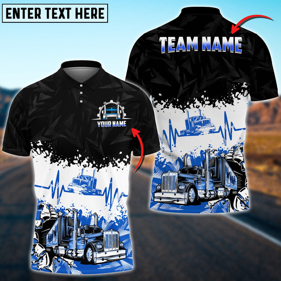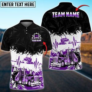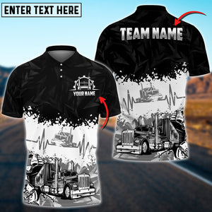Personalized Name Truck Heartbeat Pattern 3D Polo Shirt, For Truck Driver Multicolor, Gift For Men & Women
