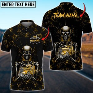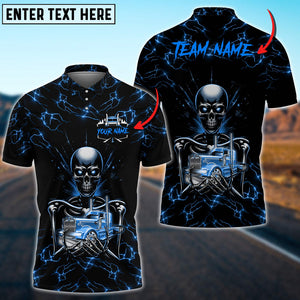 Personalized Name Truck Lighting Skeleton Multicolor Option 3D Polo Shirt, Gift For Truck Driver