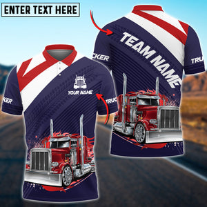 Personalized Name Truck Red White Multicolor Option Shirt, Team Shirt For Truck Driver, Truck Polo Shirt For Men & Women