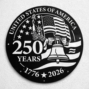 United States Of America 250 Years Metal Sign, 1776 2026 Patriotic Sign, US Flag Liberty Status Metal Sign