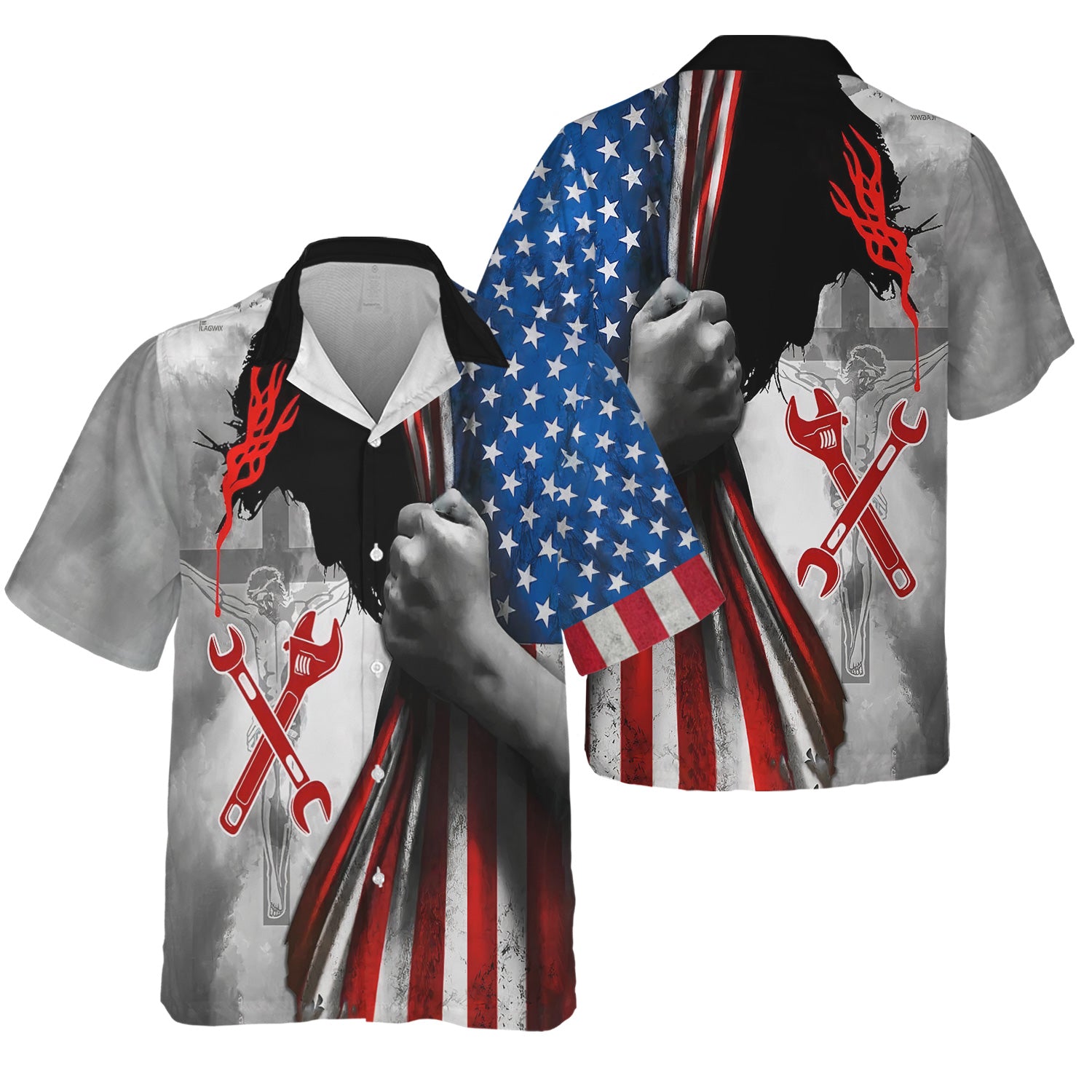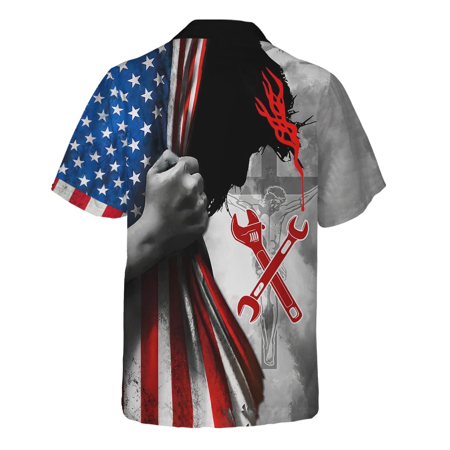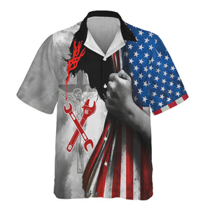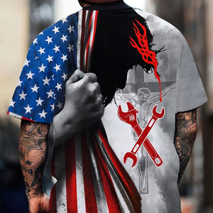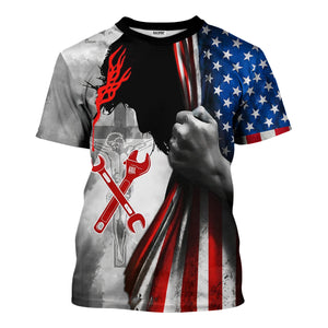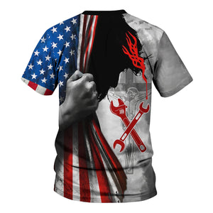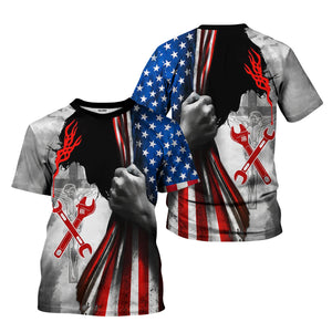 USA Flag Mechanic Wrench Shirt, Vintage Red, White & Blue Shirt for Workers, Bold American Pride Shirt