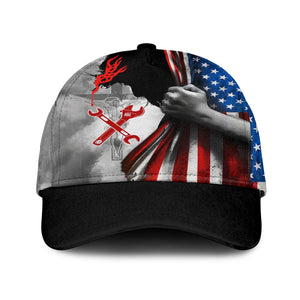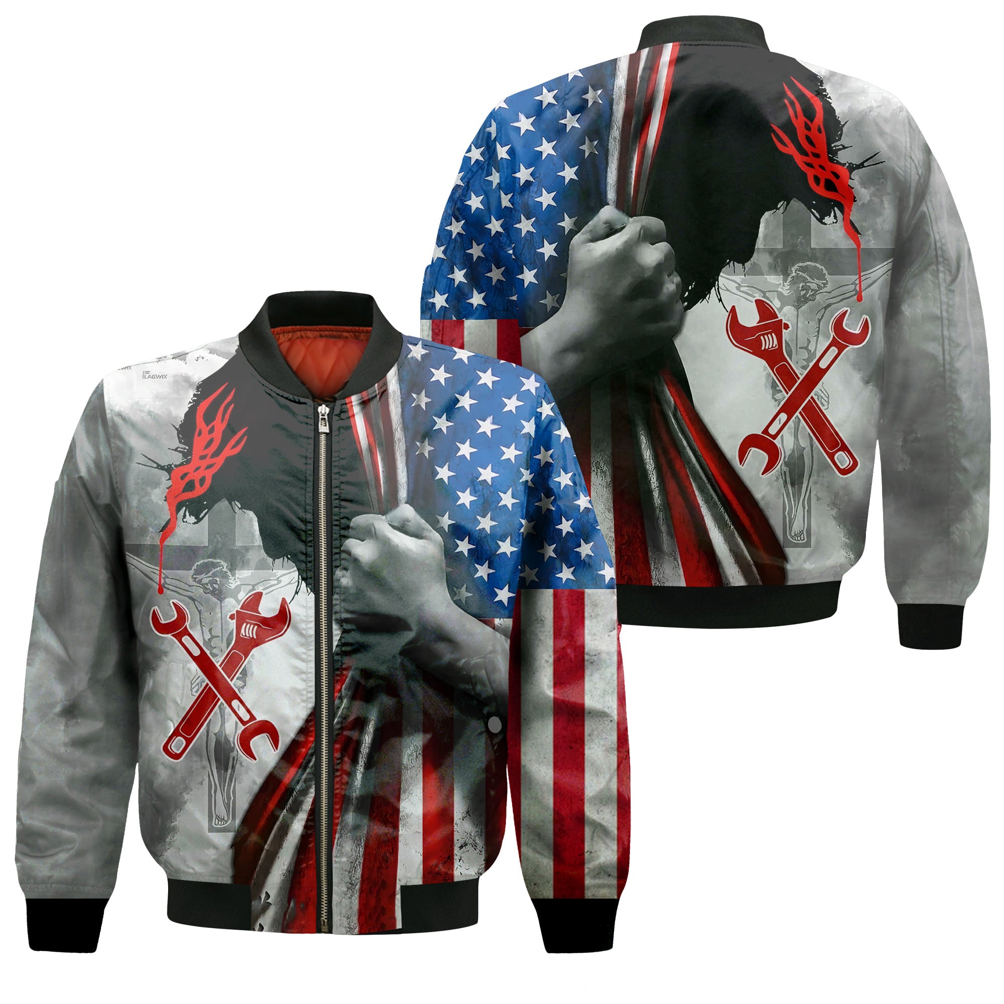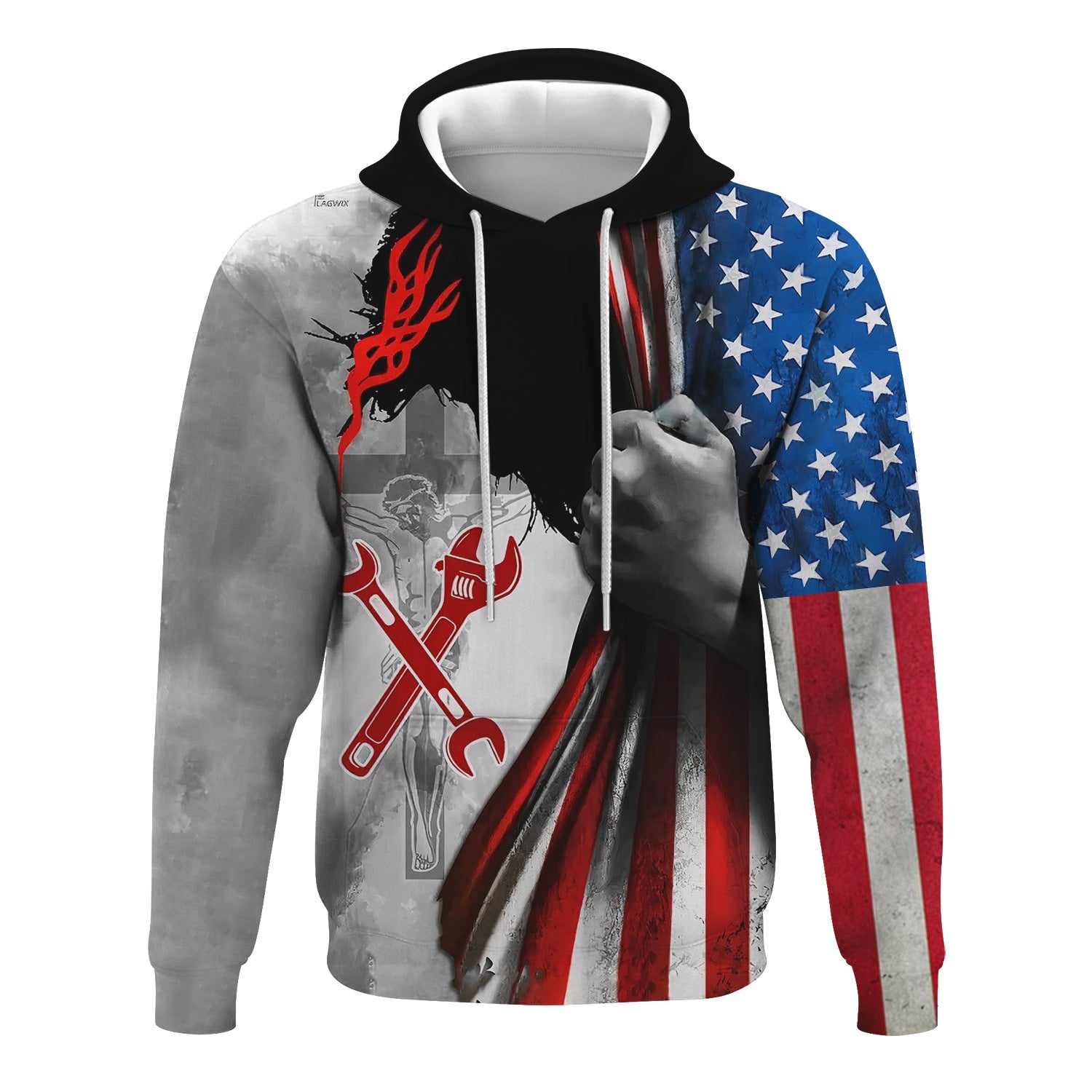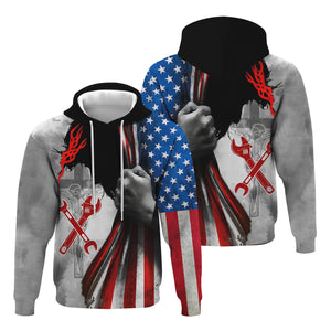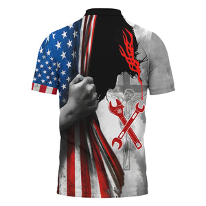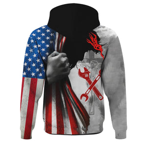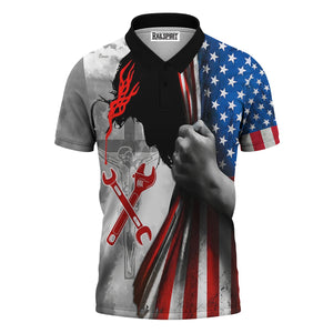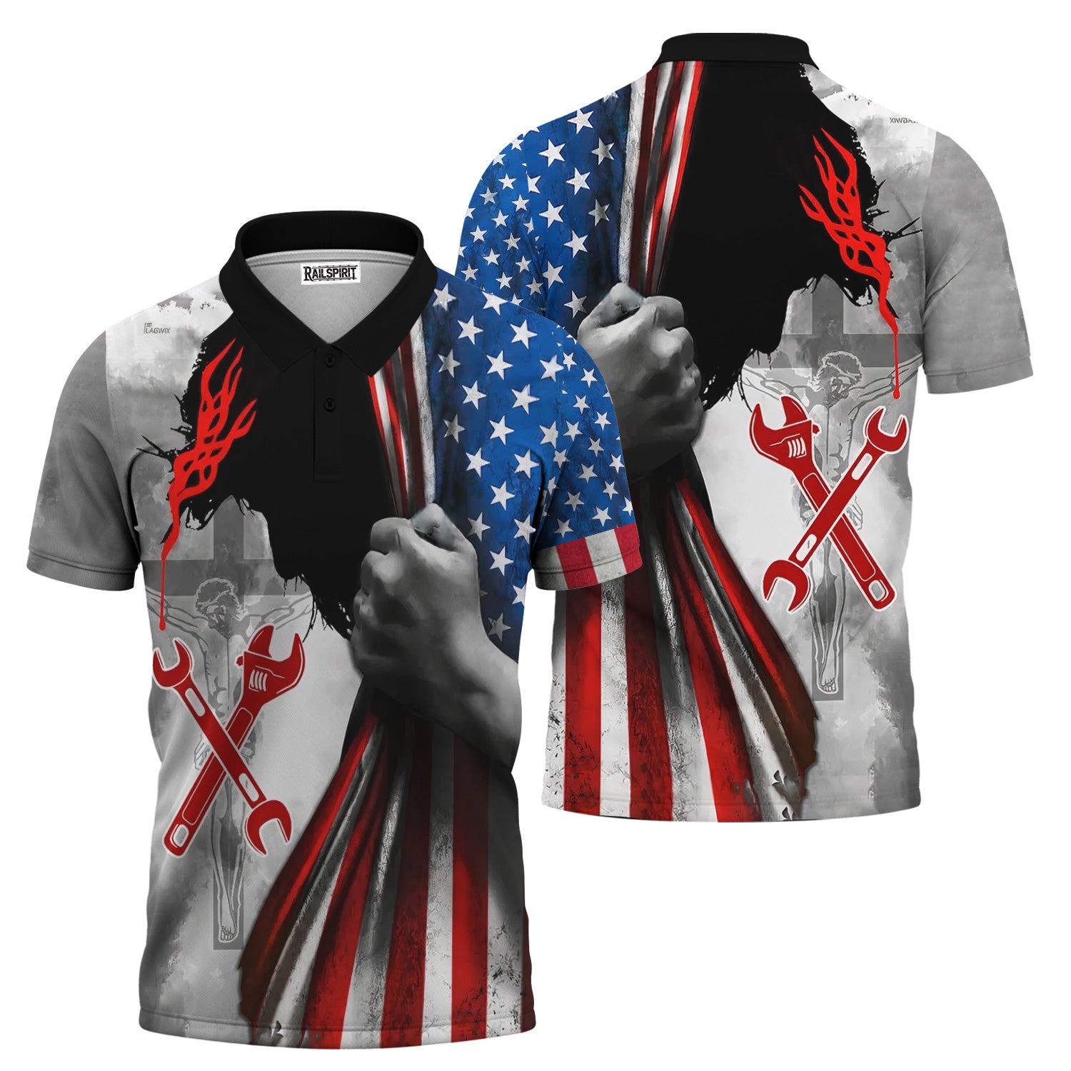 USA Flag Mechanic Wrench Shirt, Vintage Red, White & Blue Shirt for Workers, Bold American Pride Shirt