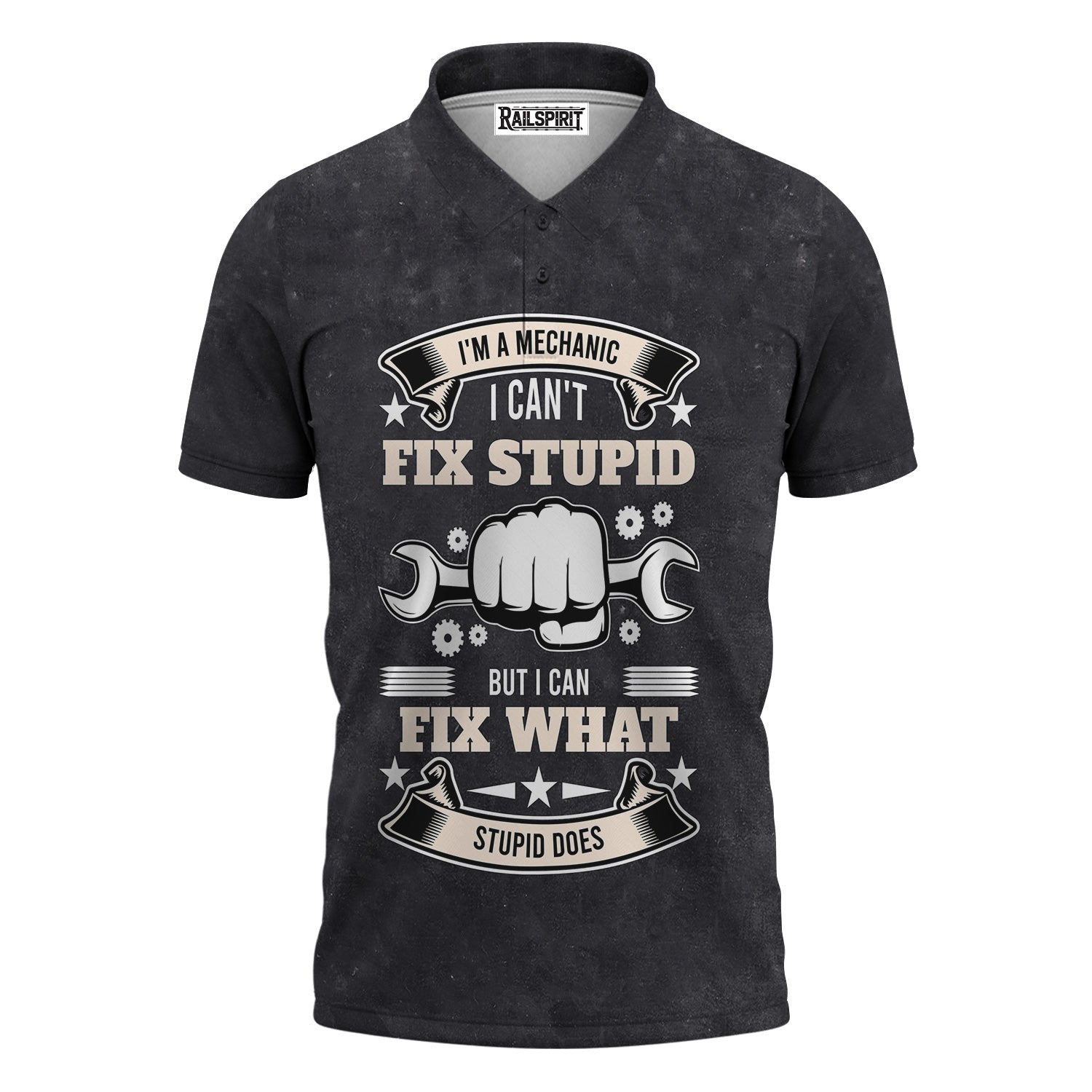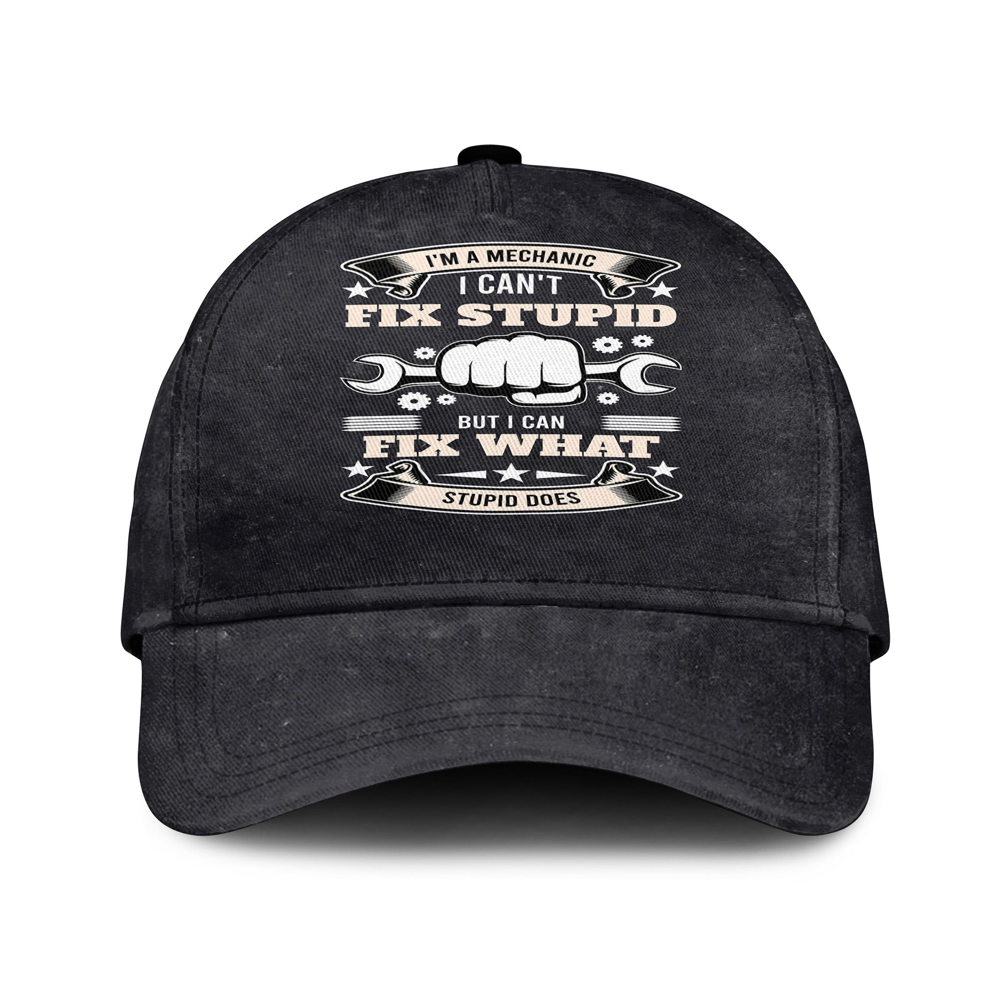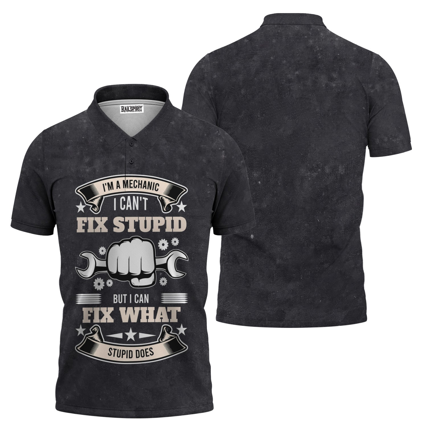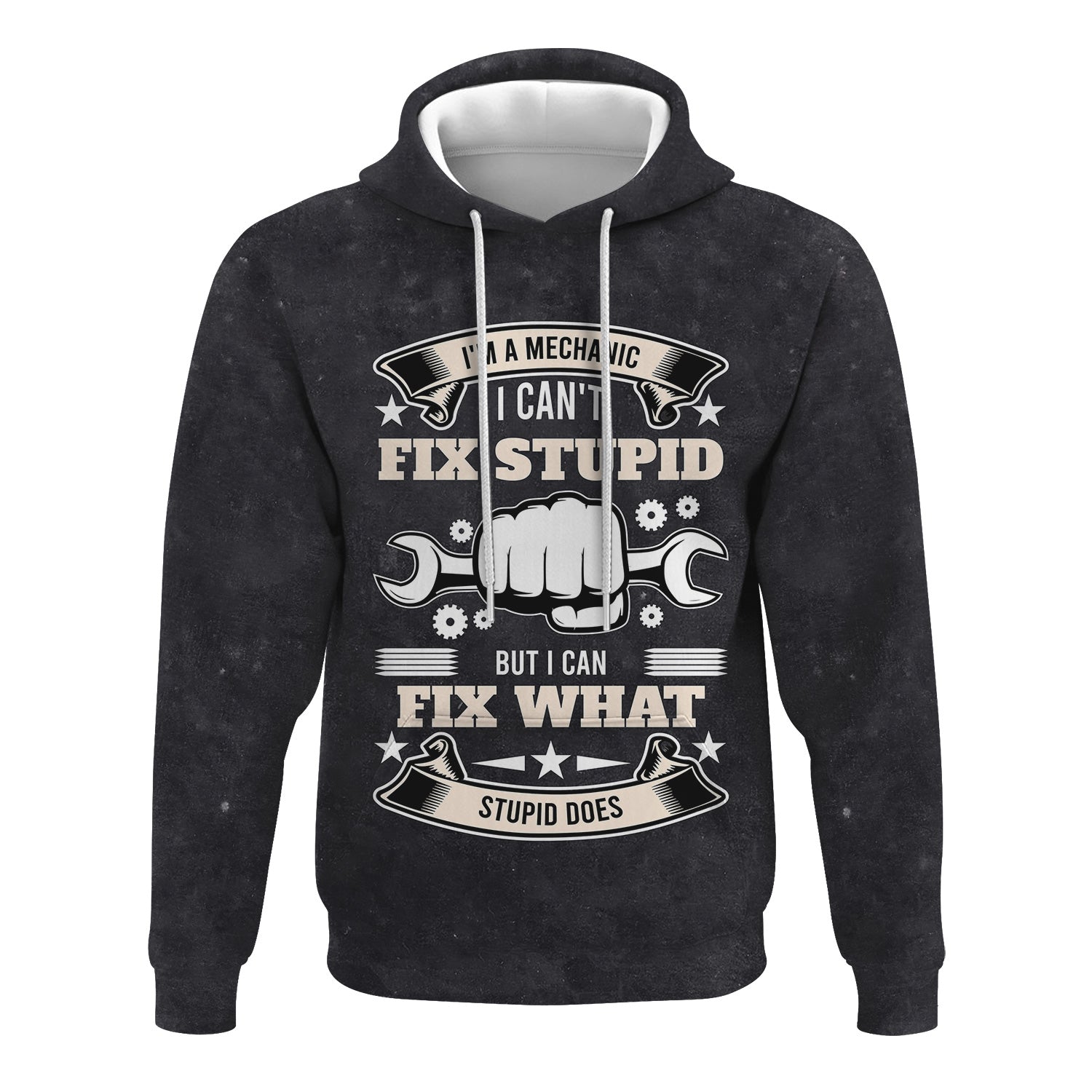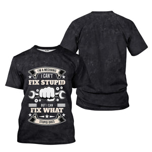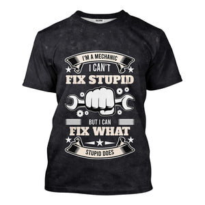 Vintage Mechanic Unisex I'm A Mechanic I Can't Fix Stupid Black Shirt All Over Print