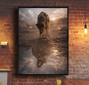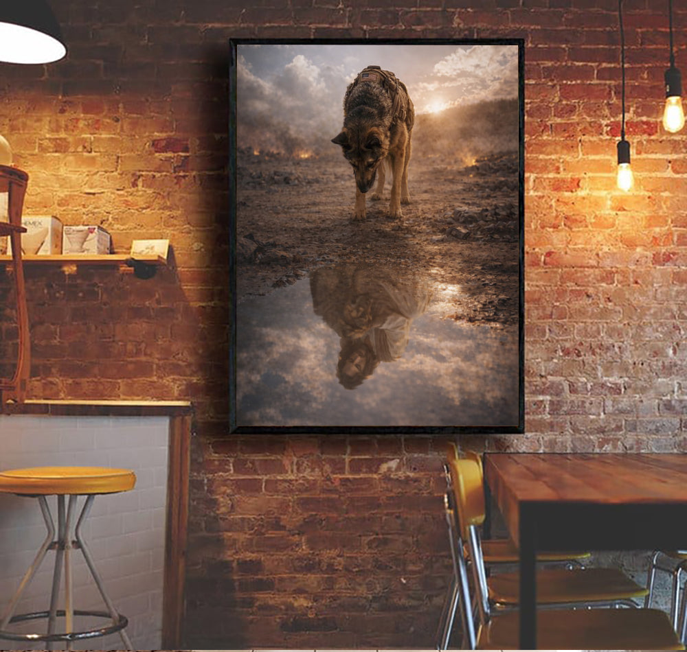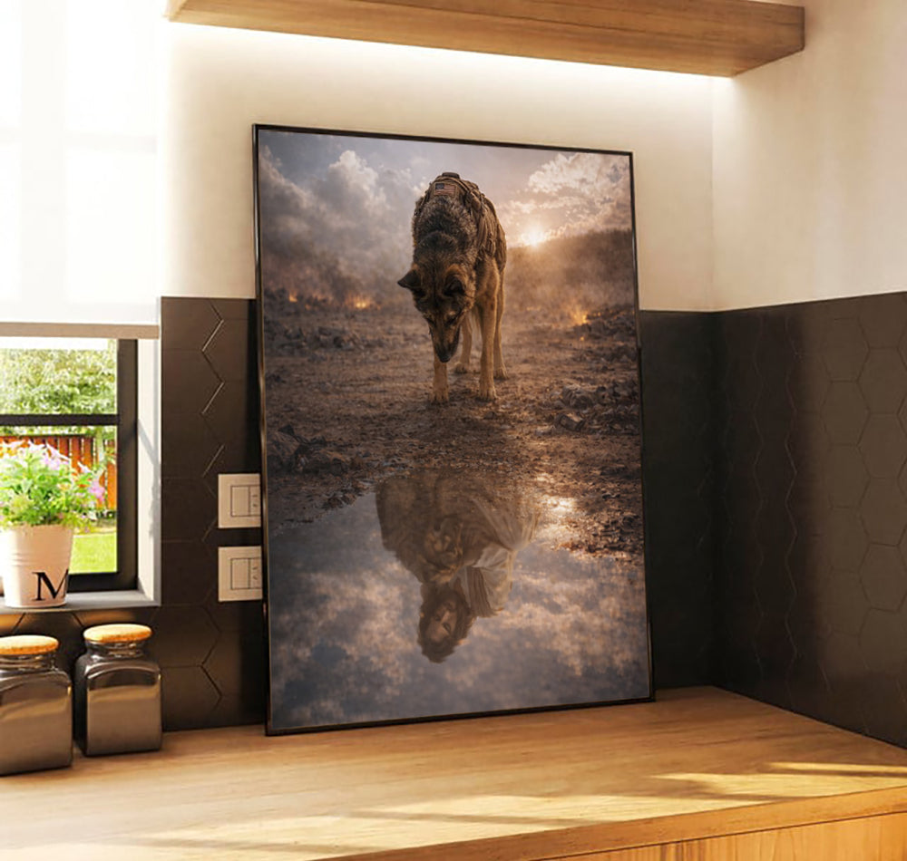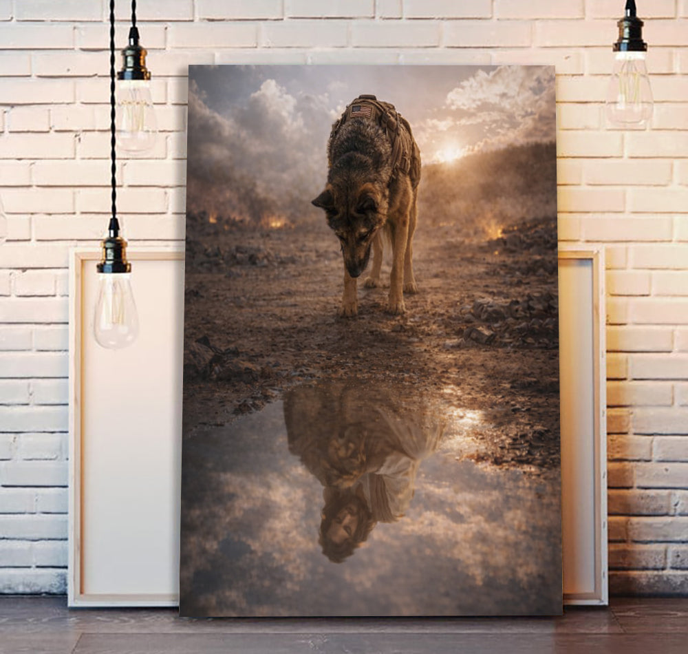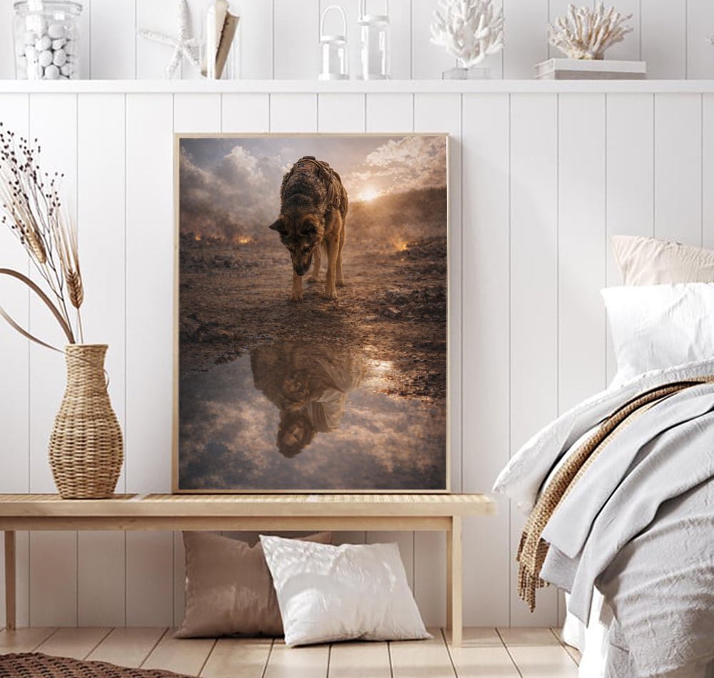 Warrior Dog Jesus Reflection Wall Art, Christian Faith Canvas Print, Military Shepherd Artwork, Spiritual Protection Home Decor Gift